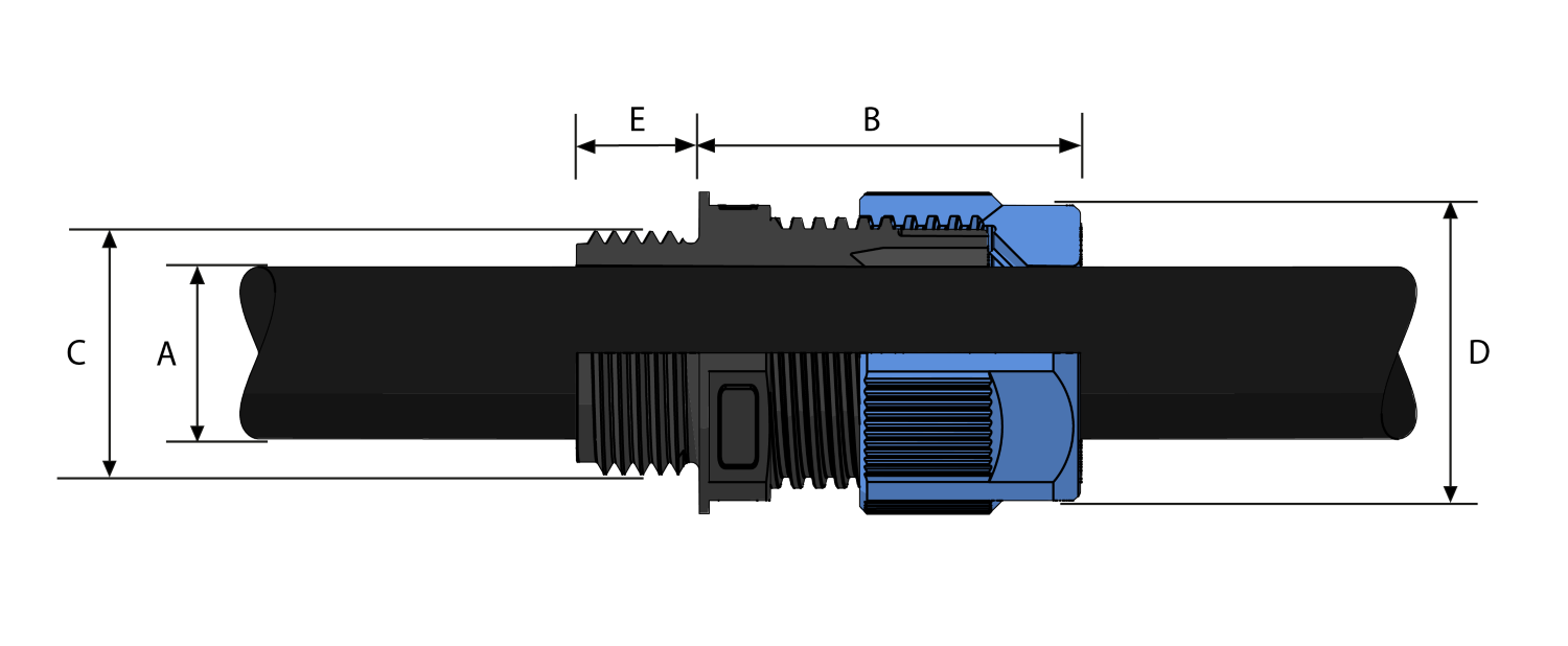 | DUAL SEAL | AVAILABLE ENTRY THREADS 'C' | OVERALL CABLE DIAMETER 'A' | ACROSS FLATS 'D' | ACROSS CORNERS 'D' | PROTRUSION LENGTH 'B' | WEIGHT GLAND ONLY † (KG) | ||||||