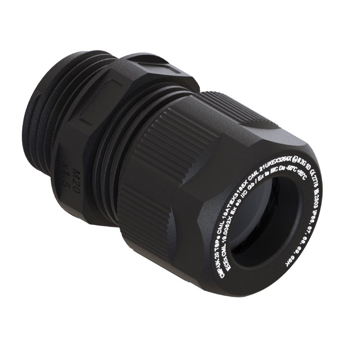 The TSPe Ex polymer strain relief range of cable glands are suitable for use in explosive atmospheres with unarmoured or braided cable when terminated inside the enclosure, and have a temperature rating of +95°c to -60°c.