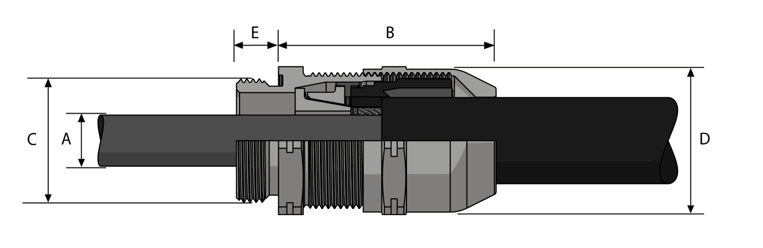 The TSX range of strain relief metal cable glands are designed for superior EMC performance, whilst also utilising a armour clamping cone & ring design, and have a temperature rating of +105°C to -60°C.